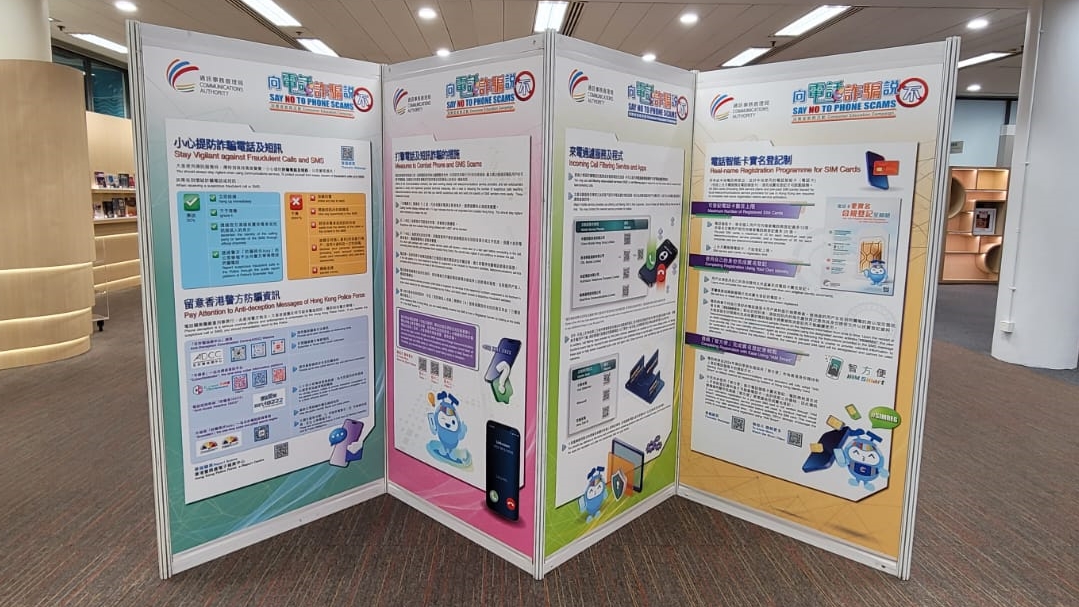 The Communications Authority organises a series of mini exhibitions at different venues to educate the public on how to raise public alertness against telephone and SMS scams, as well as to promote consumer messages on smart use of various communications services. Details are as follows: