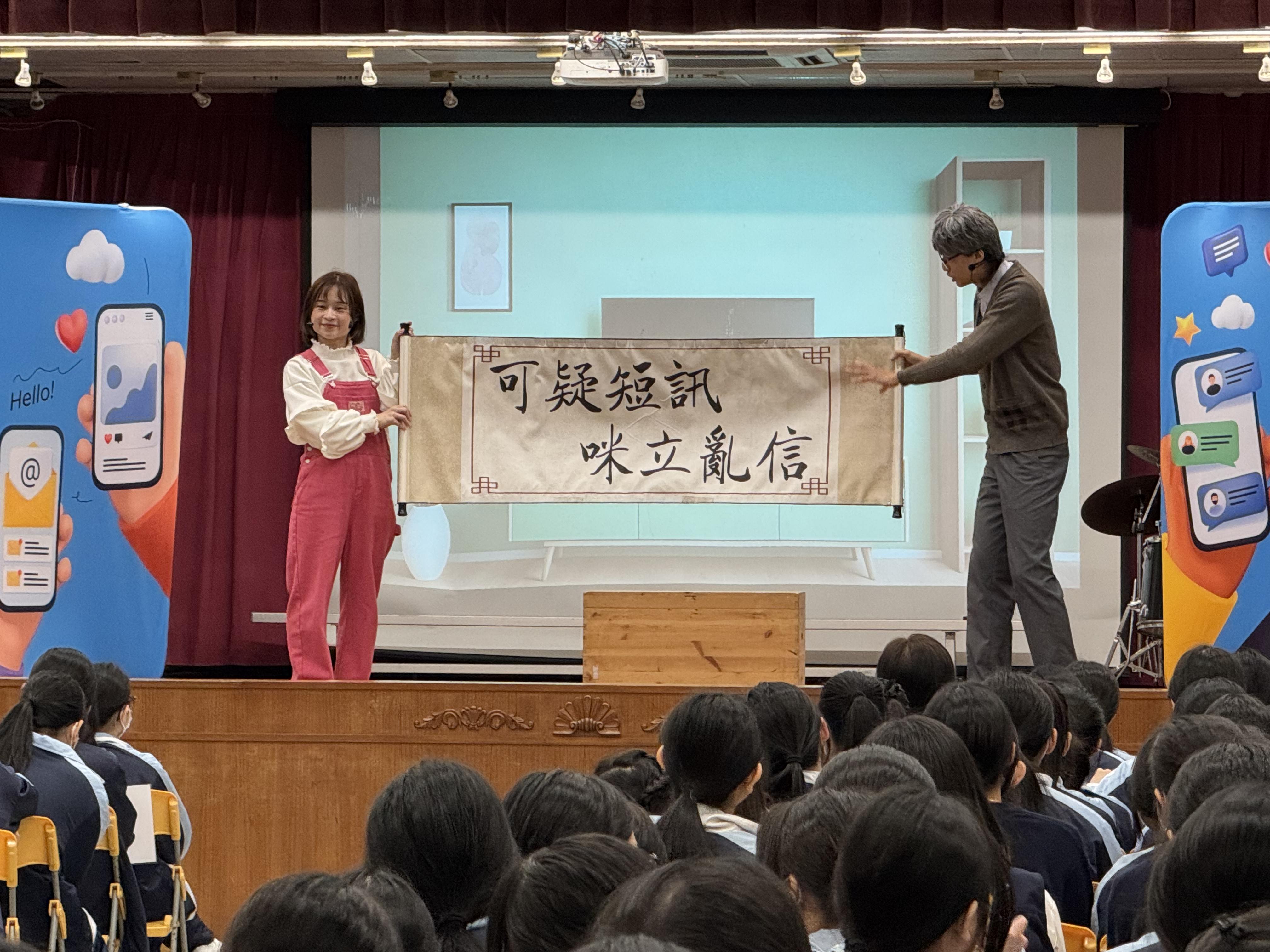 As part of the Consumer Education Campaign 2024/25, the Communications Authority has commissioned Spring-Time Experimental Theatre to stage a roving drama named "Anti-Scam Pioneer in Communications" at local primary and secondary schools. The topics covered by the drama performance are as follows: