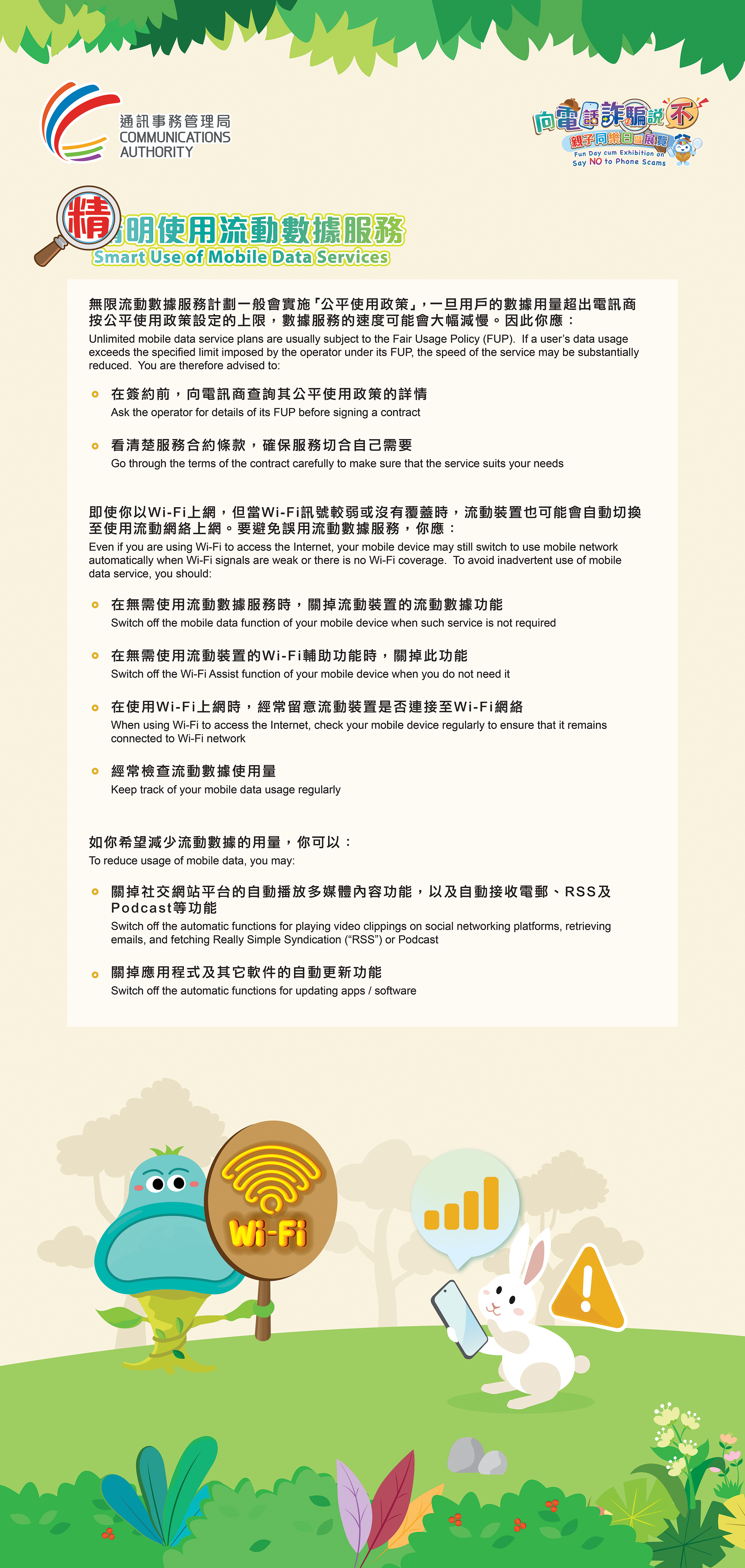 - switch off the mobile data function of your mobile device when such service is not required
